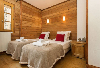 Това 2-етажно шале се състои от голяма всекидневна с камина, сателитна телевизия, напълно оборудвана кухня със съдомиялна машина, керамични котлони, традиционна фурна и микровълнова печка, абсорбатор и хладилник. Предлага 3 спални с 1 двойно легло или 2 единични легла всяка с баня/или душ и тоалетна, 2 спални с 3 единични легла с баня и тоалетна. Разполага със сауна и тераса за ваше удобство.