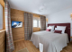 - Спалня с едно двойно легло или с две единични легла (90/200), която разполага с два гардероба, телевизор, балкон с гледка към планината, самостоятелна баня с душ, сешоар, кърпи и тоалетна.