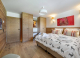 - Главната спалня разполага с гардероб, дрешник, балкон, телевизор, едно двойно легло (180/200), самостоятелна баня с вана, душ, сешоар, кърпи и тоалетна.