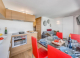 o Studio 2 души: около 12–16 м², с мини-кухня (2 котлона, фризер, фурна/микровълнова), баня с душ и WC.