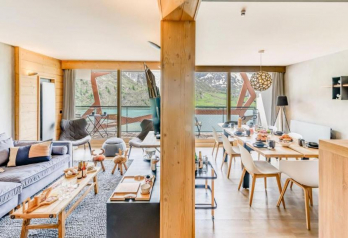 • Гледки: от терасите и балконите се разкриват панорамни гледки към езерото Тинь, масива Товиера и ледника Grande Motte.
