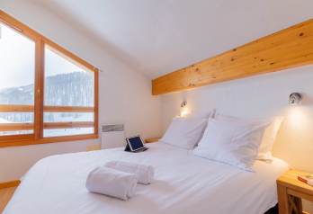 - Едноспален апартамент с кабина на две нива за 7 човека 42-45 м2 - дневна с 1 разтегателно легло или с 1 канапе/легло, напълно оборудван кухненски кът (стъклокерамичани котлони, комбинирана микровълнова фурна, хладилник, съдомиялна машина), спалня с двойно легло или с 2 отделни легла, спалня-кабина с едно двуетажно легло, едно допълнително единично легло или в спалнята, или в дневната, баня с тоалетна, балкон. Ски гардероб в приземния етаж.