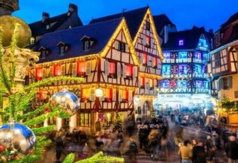 Еднодневна екскурзия "Колмар и пътят на виното". Отпътуване за Колмар - "малката Венеция на Франция". Разходка из тесните улички, осветени от празнични светлини, и цветните къщи с традиционна елзаска архитектура-Къщата с главите, къщата Пфистер, църквата Сен Мартен, каналите на р.Лаух са само част от пешеходната ни разходка в бижуто на Елзас - приказния Колмар.