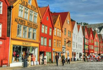 Закуска – сух пакет. 06:00 ч. – отпътуване за Согнефиорд – най-дългият фиорд в света и един от най-впечатляващите. Той се врязва дълбоко в сушата, достигайки до най-високата планинска верига в Норвегия – Йотунхаймен и до най-големия норвежки ледник. До фиорда се пътува с автобус по един изключително живописен път, а след това се прави разходка с корабче по ръкавите на фиорда – Найройфиорд и Аурландсфиорд (билетът за корабчето е включен в пакетната цена на екскурзията и не се доплаща). Продължаване към Берген – най-живописният град в Норвегия, наричан често „Вратата към фиордите“. Привечер - пристигане в Берген. Настаняване в хотела. Нощувка.