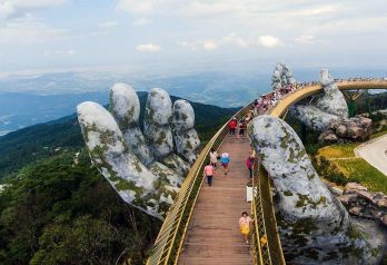 Възможност за допълнителна следобедна екскурзия *Изкачване с лифт до комплекса Ба На Хилс- „Ръцете на Бога”, дълъг 150 метра пешеходен златен мост, едно от най-интересните места, които можем да посетим в света.Градчето Ба На Хилс се намира на 1,5ч път от Хой Ан. Известно е с прекраснана си природа и с най-дългата лифтова дъга в света (над 5 км). Основното предназначение на моста е да свърже лифта с началото на горите, без да е необходимо изкачването на стъпала. Гледан отстрани, златният мост изглежда като златна нишка, която две гигантски каменни божествени ръце издърпват от земята.Най-впечатляваща е гледката, когато се образува мъгла в долината под моста. Тогава усещането е сякаш стъпвате в облаците, защото мостът се намира на 1000 метра надморска височина!