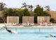 Открит басейн: Басейн с шезлонги и чадъри, предоставящ комфорт и релакс.