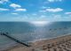 Собствен, пясъчен, с понтон. Чадъри и шезлонги на плажа и басейна - безплатно. Плажни кърпи - безплатно, срещу депозит.