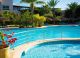 - Шезлонги и чадъри около басейна