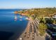 Собствен, пясъчно-чакълест с дължина на плажната ивица 95 м. Чадъри, матраци и шезлонги при басейна и на плажа, плажни кърпи - безплатно.