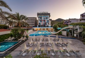 Намира се на 120 км от летище Анталия, на 130 км от центъра на Анталия, на 7 км от центъра на Алания, на 50 м от брега на морето. Построен на обща площ от 5 000 м2. Хотелът е с концепция само за възрастни (Adults Only 16+).