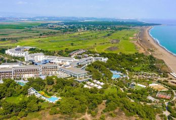 Хотелът се намира на 46 км. от международното летище в Анталия, на 54 км. от центъра на града, на брега на морето. Намира се в топ 100 на най-добрите GOLF хотели в света. Хотела е разположен на 1.000.000 m2, като 600 000 кв. м. са игрища за голф с гледка към плажната ивица.