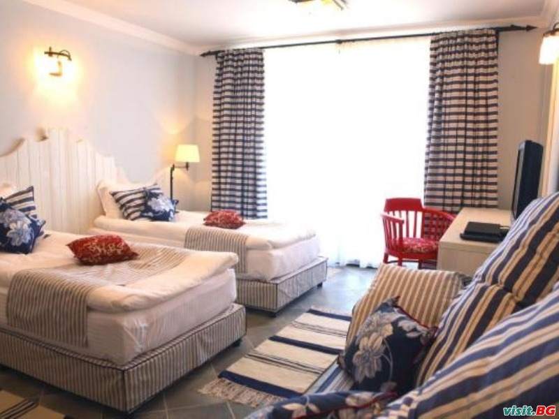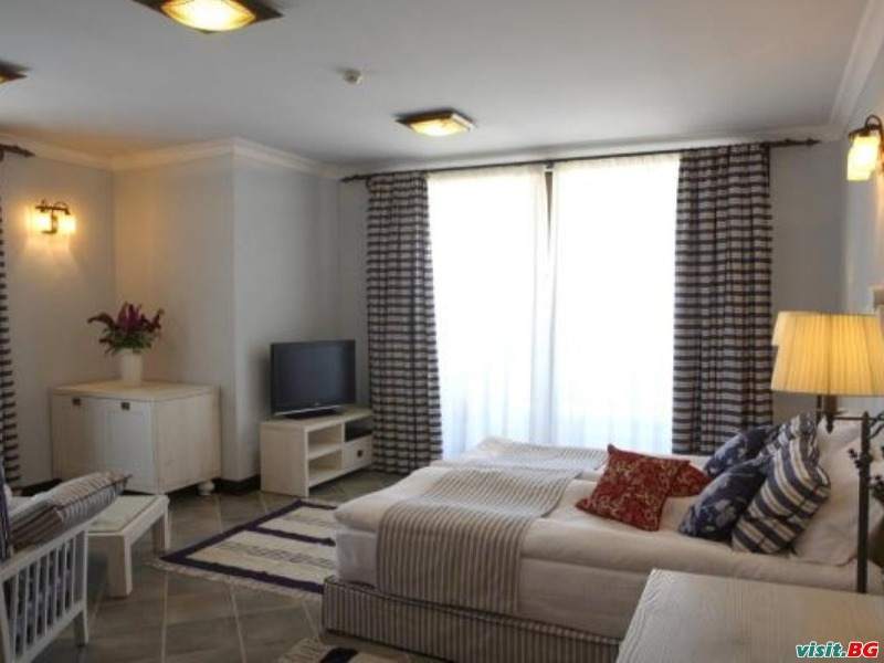 * Двойна стая - легло Queen size, тераса, сейф, душ кабина, минибар, телевизор, DVD, телефон, интернет, централна климатизация.
