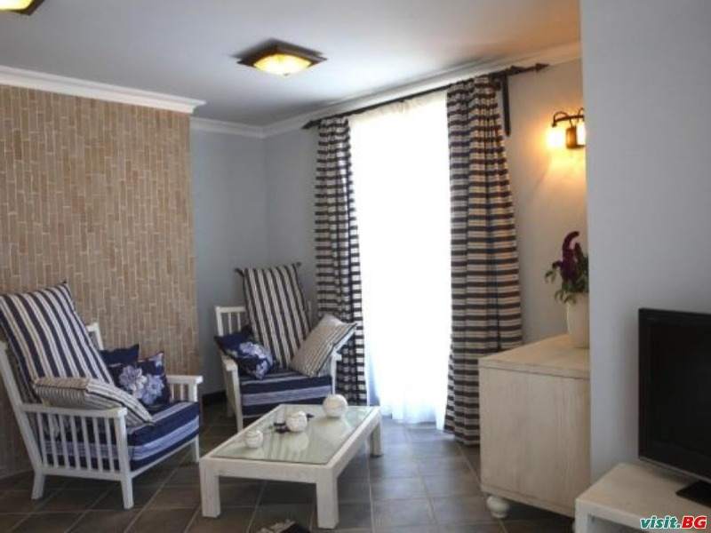 - Апартамент - помещение с антре, дневна и кухненски бокс, собствена трапезария и санитарен възел, 1 легло Queen size, 2 телевизора с DVD, телефон, интернет, централна климатизация, тераса.