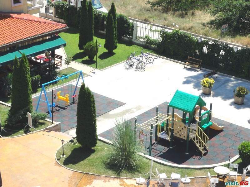 Удобства: Външен басейн със зона за деца, Ресторант, Бар около басейна, Външно барбекю, Детска площадка, Магазин, Зелени площи, Оградена и охраняема територия с пропускателен режим.