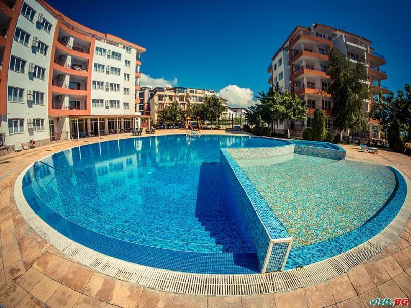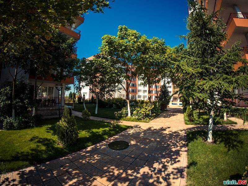 Има превъзходна басейн за възрастни и басейн за деца, безупречно поддържан вътрешен двор, градини с декоративни храсти, цветя и тревни площи, частен безплатен паркинг. Комплексът разполага с 24-часова охрана.