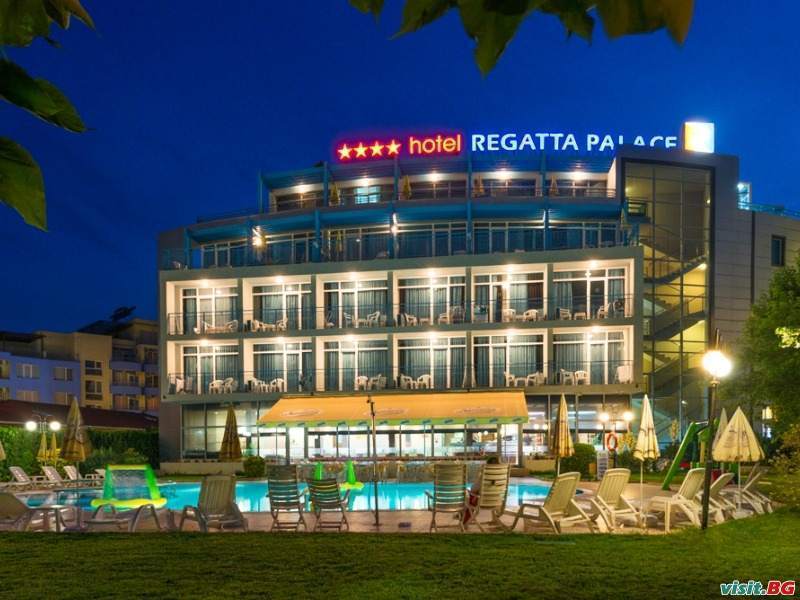 В услуга на гостите, хотелът предлага събуждане по телефона, химическо чистене, пералня, гладене, лекар, обмяна на валута, персонални сейфове на рецепция, джаги, дартс и магазин. Лоби барът на хотела е отворен 24 часа в денонощието и предлага съчетание от приятна музика, напитки и комфорт. Хотел Регата Палас разполага с един основен ресторант, предлагащ богато меню от местни и европейски специалитети, в който се сервират закуска и вечеря на бюфет. Ресторантът е 60-местен, с красива външна тераса. Гостите могат да ползват безплатно открития басейн на хотела. В близост могат да бъдат наети колелета под наем.