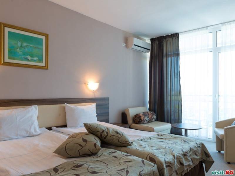 На разположение на гостите са 39 двойни стаи, 2 тройни стаи, 3 студиа и 3 апартамента. Всички те са оборудвани с телевизор, телефон, минибар, климатик и балкон, повечето с великолепен изглед към морето. Хотелът разполага с асансьор, бюро за обмяна на валута, персонални сейфове, коли под наем, химическо чистене, дартс и джаги, магазин, лекар, румсервиз. За приятната почивка и доброто настроение на разположение на гостите е ресторант с приятна градина, предлагащ отбрани специалитети от българската и европейска кухня, лоби-бар и открит басейн.