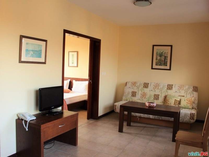 Апартаментите разполагат със спалня /двойно легло/ и дневна с разтегателно канапе, кухня, мини бар, климатична инсталация, телефон с директно набиране, кабелна телевизия, безжичен интернет.