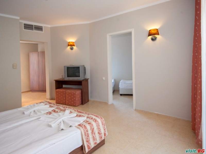На своите гости комплексът предлага настаняване в двойни стаи и едноспални апартаменти /две преходни помещения без врата между тях/. Никое от помещенията в хотела НЕ разполага с оборудван кухненски кът.