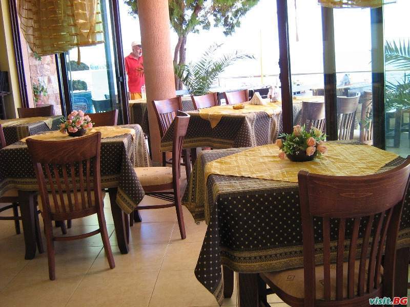 Ресторантът към хотела е красив и уютен и разполага с просторна тераса на брега на морето. Общият капацитет е с 100 седящи места. Работното време е съобразено с предпочитанията на туристите. Предлага се богата кухня с обедно меню, специалитети, ястия от Българската национална кухня, отбрани напитки и вина. Гостите на хотела и ресторанта могат да се наслаждават на безупречно обслужване и внимание.