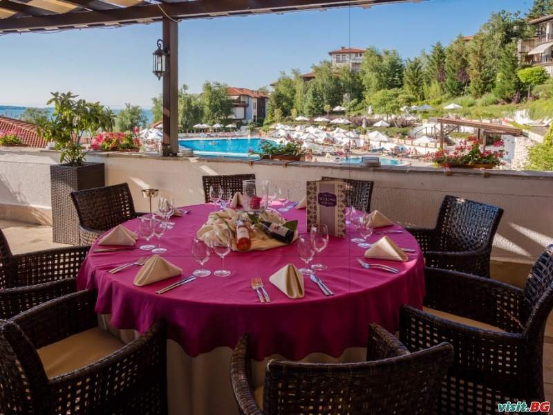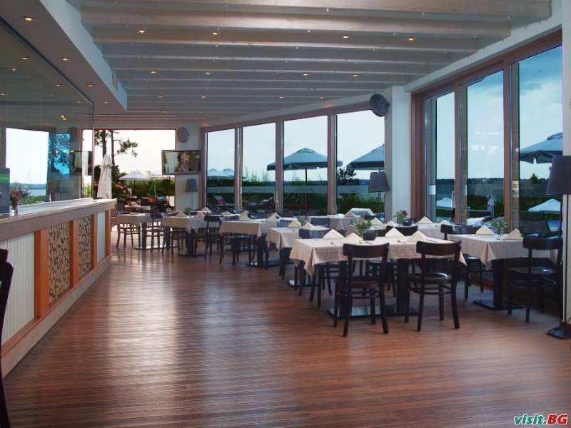 Всички нива и съоръжения в Центъра за услуги и развлечения на Санта Марина имат рампи за детски и инвалидни колички. Дневният бар е в центъра на соларните тераси. Комплексаът Ви посреща в 2 ресторанта - Галерия в който се сервират закуски и обяди на блок маса, Аполония /a-la-carte/ и 1 пицария. Над кухнята на ресторанта се намира игрална зала. От двете страни на това ниво има стълби и рампи, които отвеждат към вилите.