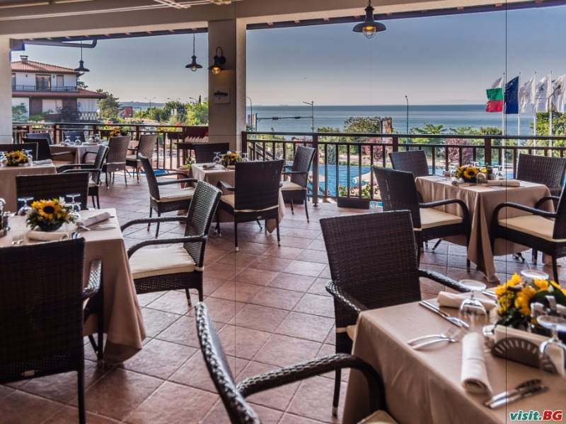Центърът има обществено предназначение и е разположен на две нива на входа на ваканционното селище, което осигурява пленителна гледка към морето и стария град на Созопол.