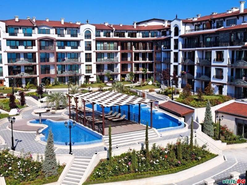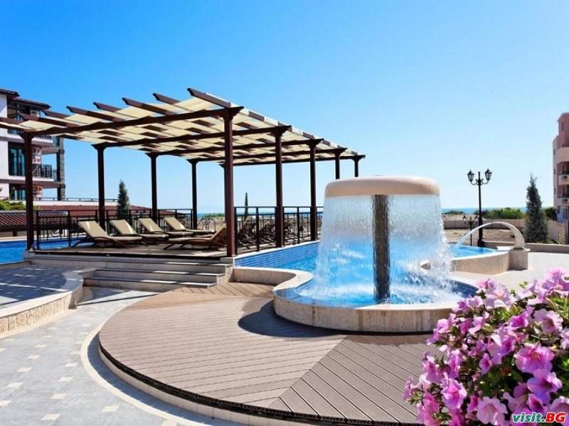 На територията на комплекса има панорамен външен басейн за възрастни и детски басейн, красива градина с екзотични цветя и много тревни площи.