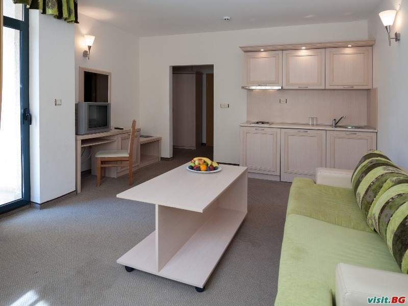 Апартаментите са подходящи за семейства. Състоят се от една спалня с двойно легло и хол с разтегателен диван, оборудван кухненски бокс и тераса, оборудвани с кабелна телевизия, телефон, климатик, модерна и просторна баня с душ-кабина, WC, хладилник, тераса. Максималния капацитет на гостите в едноспален апартамент е 2+2.